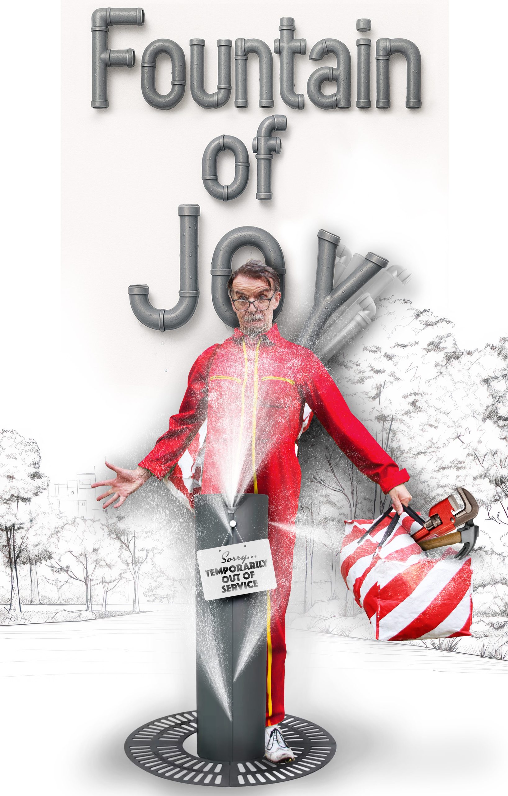 A lanky, clumsy plumber arrives carrying a clatter of pipes and equipment, he goes to fix the fountain. Suddenly water explodes in his face, with that chaos and craic quickly follow, with slapstick and comedy falling over themselves to catch up.