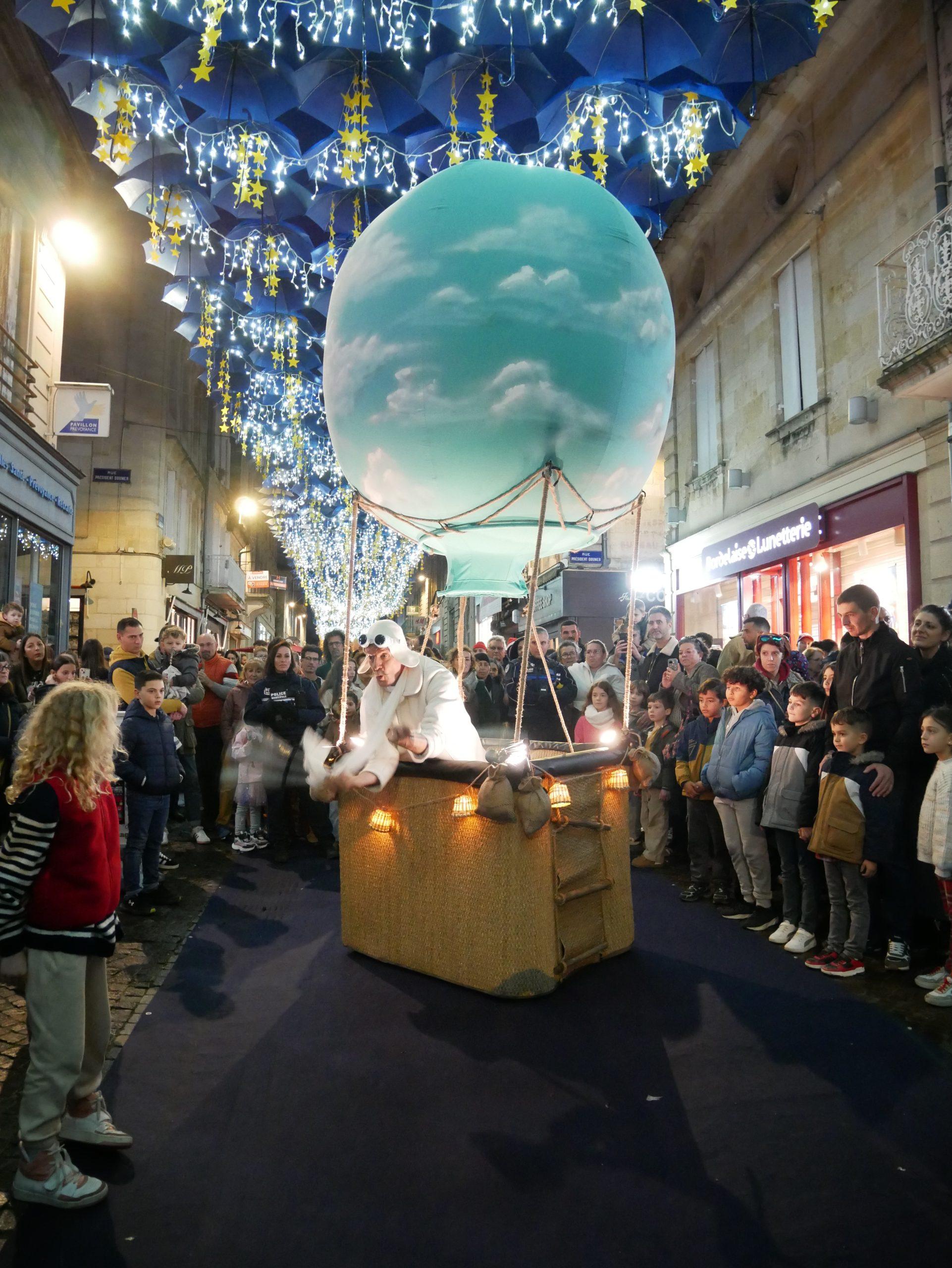 La Montgolfière se déplace en tout douceur comme par magie, un déambulation avec la mouvement qui émerveille les spectateurs.